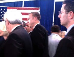 Finally! Newt and Callista arrived! The crowd went wild! Or as wild as 300 old people can get. Here they are arriving at the hangar: