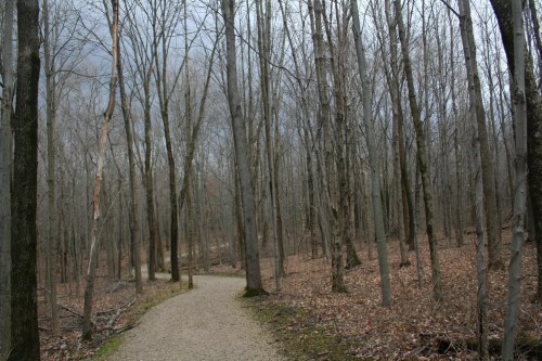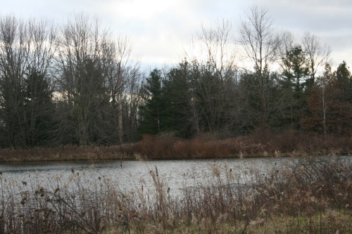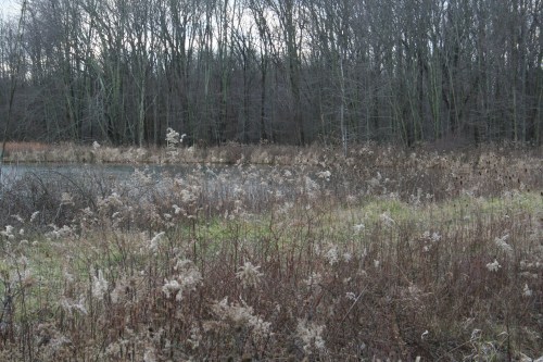 We had an unnaturally warm December this year, no white Christmas, and days that felt like late March. On December 21, 2011, the high temperature must have hit 60. It had rained earlier but the sun appeared at noon and I thought, this might be the last chance I have to do this. So I went to Highbanks in order to walk the trail to the wetlands overlook deck. I packed up my camera because I figured it might be blog material and I wanted to include some pictures.