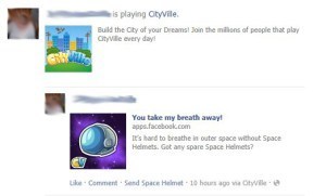 Games. Now, I’m sure there is probably a way to prevent this type of post from appearing. Some setting somewhere. But the real problem is I don’t care enough to investigate it in order to figure out where that is. Do we really have to see this stuff? No, I don’t have any space helmets! And when did we start playing Cityville? I thought we were playing Farmville! Oh wait, the Industrial Revolution must have happened.
