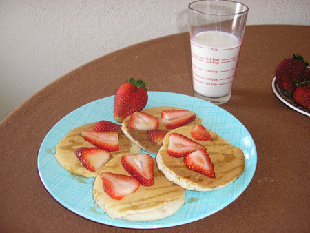 In her book, she compared from scratch pancakes to frozen. I was hoping she would mention pancake mixes too but sadly no. I like pancake mixes and their semi-scratchness which makes them easier to tailor for small batches. The above meal was fixed with a mix, but yeah, you should at least try scratch pancakes.