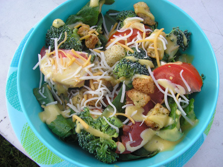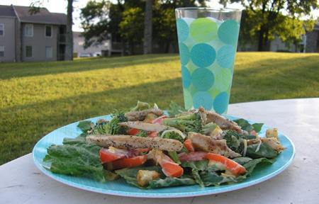 The variation below is the same salad with 2 oz of Perdue Chicken added, which brings the total to $1.46...over a $1, but that's okay...we're going for an average.