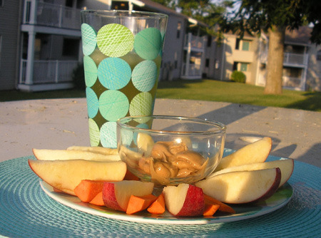 A breadless, dairy free option for peanut butter. This light lunch comes in at 98 cents. I have found peanut butter goes with nearly everything crunchy, but my favorite pairing is apples and peanut butter. There's a whole carrot cut into sticks nestled between the apple slices. I often use a larger apple and don't bother with the carrot, but this is a little more nutritionally diverse. If you have a peanut allergy, swap out the peanut butter for hummus (almond butter or a hazelnut spread may also be worth a try). Ready made hummus tends to push over the $1/meal target, so I'm investigating how to make it at home. Other dippers to consider are pretzels, celery, and raisins. That's iced green tea in the glass.
