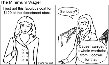 On the flip side, it's perfectly fine to spend $120 on a good quality coat, if you have the money, need a coat, and really like this particular coat. I have two coats in my closet currently that were close to $100 when my parents bough them for me back in high school. They've both kept me warm for 10-15 years and are likely to survive a few years more, so I think that was a reasonable investment.