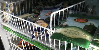 You need to label read on this one. The sliced “cheese” was soy rather than milk based, but there was some real shredded cheese, string cheese, and crumbled feta in the cooler.