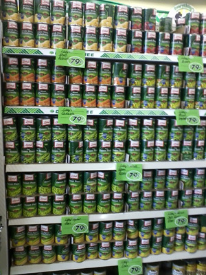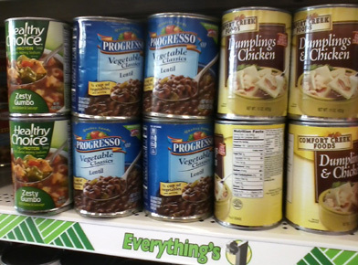 Many of the canned vegetables were 79 cents. While frozen is generally a better option, canned is acceptable when freezer storage isn’t available.