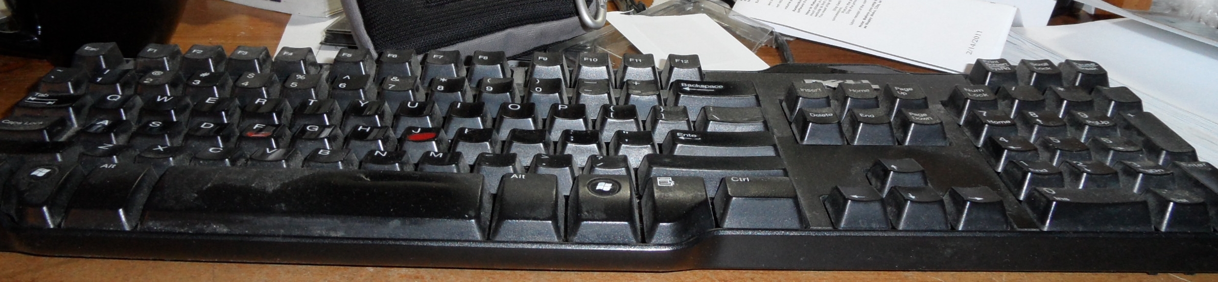 Yes, it's time. The keyboard I have had since…well, I'm not really sure how long. I think I got it with my first Dell. I think it's that old. It certainly looks it. The paint is worn off some of the letters, the bouncy is long gone, and even the little bumps on F and J have worn down. Twice replaced by daubs of nail polish, even, and worn smooth again.