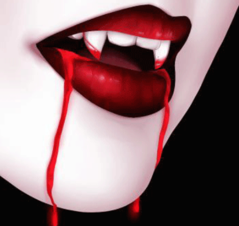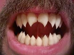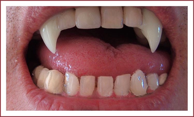 Sometimes you will see a pic of a poor vamp that has a mouth full of razor sharp fangs, now this chap or chap-ess can only drink blood or soup as such teeth make it impossible to chew!