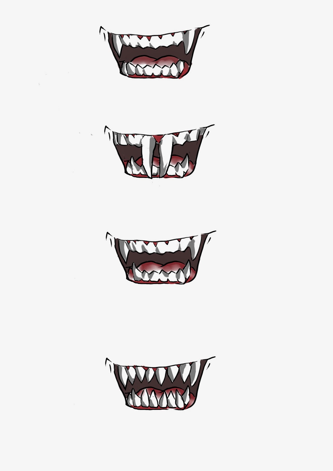 3. FANGS ……………… to be a vampire you have to own teeth that are sharp and can puncher the skin and not remove it by the mouth full.