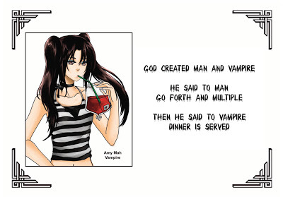 Now a word of warning it is not a good idea to stand behind any vampire and shout “BOO” as unlike a human being surprised may produce a puddle of water with a vampire it is more likely they will remove the heads of anyone within 20feet as a shock response, or just anger of having ruined yet another pair of shoes by the extending of foot claws by accident.