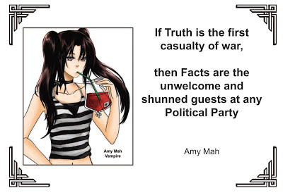If truth is the first casualty of war then facts are the unwelcome and shunned guests at any Political Party, one of my fun little quotes.