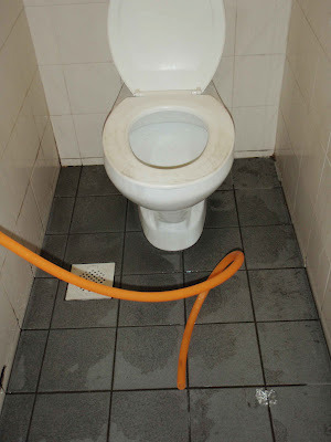 For the real posh we have a little pink hose pipe and flushing and very important a drain in the floor……