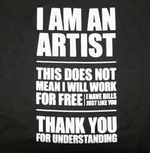 Artists' inspiration may not come from money, those who create will create regardless, but they have as many bills as the next guy/gal. Please support your local artists. The internet has misrepresented entertainment as free. People can log on and see videos, pictures, blog postings, etc. If you love a writer's blog, show them support by buying their book. If you see artwork online, buy it. An artist will appreciate it and create more.