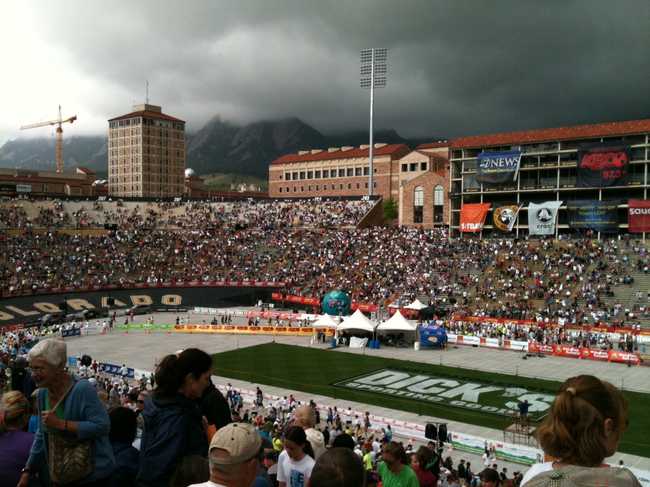 The Unversity of Colorado's Folsom Field (finish line)I ran the race with two of my girlfriends, Kelly and Sara. They were wonderful running partners. When I said I needed to walk for a second to breathe, they were gracious knowing I was readjusting to altitude (the summit of the race was just shy of 6,000 feet above sea level). At the end, I was in desperate need of some Motrin, but felt exhilarated and proud.