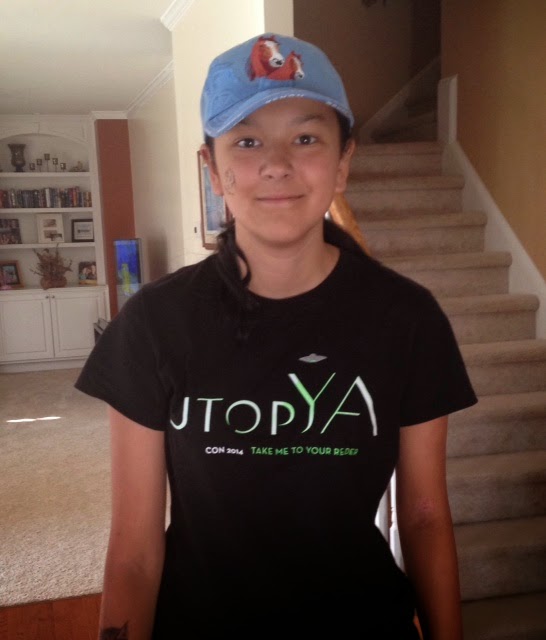Proudly wearing her t-shirt!Jackie is a voracious reader, usually knocking out 3-4 books a week. Plus, she re-reads books. Something I never seem to have time to do! When I told her I was going to a young adult writer's conference, she asked if she could tag along. She wanted to meet several authors--one in particular was LP Dover--and find new reads. At the beginning of the day, she calmly set expectations.