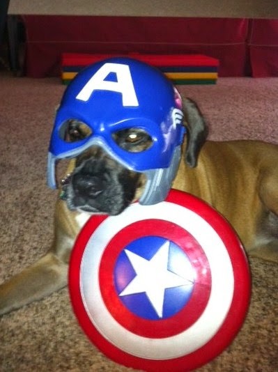 That's the kind of dog she was -- she let the girls turn her into Captain AmericaWhen we left the vet's office, our entire family in tears, there was a beautiful rainbow. For those who know the Rainbow Bridge poem, you understand the significance. For those who don't know it...