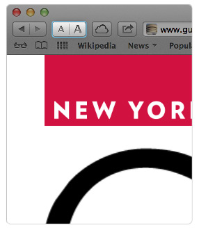 So imagine my glee when I started using Safari and I noticed the eyeglass symbol in the upper lefthand corner of my menu bar. Finally, an easier way to make my screen bigger so I could see it easier.