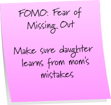 My oldest daughter has a tendency toward FOMO problems. She would go to an event just to make sure she wouldn't be left out of future invitations. She's so her mother's daughter. A tendency toward guilt and insecurity are leading indicators of being susceptible to FOMO.