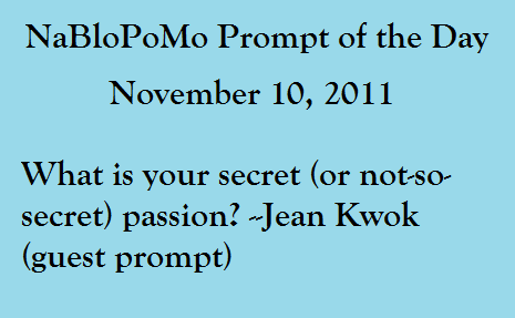 A secret passion? I pride myself on fleeting passions. Ones that surface and resurface when I need them to. Politics, comes and goes as issues present themselves. Other times, I want nothing to do with the bickering and complete lack of getting things done. Education, absolutely, but I also believe in summertime and memories. Just yesterday I was passionate about both sides of my hair being even after I spent a half hour curling it. The next day, ponytail.