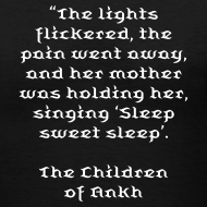 “In the woods lay a bleeding angel in all her glory. Her arms posed gracefully above her head and her hair soaked in the mud, the blood and feces in which she lay. Dying, fading into the other realm, her form christened by the rain as though the trees had begun to weep upon her in sadness for the brutality she had endured. The Children of Ankh series