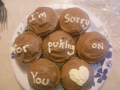 I would like to know why nobody has ever made me I'm sorry cupcakes when they vomit on me ;)