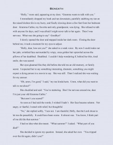 A dying woman shares a secret memory with her grandson or granddaughter. A classic opening strategy: the deathbed scene that will (I presume) serve as a portal to grandma’s confession about “that summer” when “part of” her died.