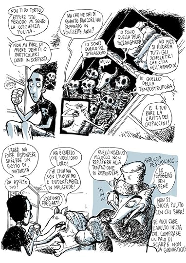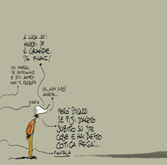 E poi credo che lui mi percepisca alieno, troppo distante per età e per esperienze, boh. Quando ci incontriamo sento che Zerocalcare mi darebbe del lei, è molto timido, si troverebbe più a suo agio così, sono sicuro, e invece la mia affabilità invadente da giovine anziano gli impone il TU e un fare da amicone con ‘sto borghesotto caciarone barbuto che chicazz’è non l’ha capito mica bene.