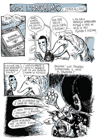 Domani sera alle 19,30 Zerocalcare presenta per la prima volta UFFICIALMENTE il suo libro “La profezia dell’armadillo” alla fumetteria Quattrodita di Roma (ormai mia location preferita) in via dei Reti 42, zona San Lorenzo, e ci sarò pur’io, affabile, invadente giovine anziano. Contento.