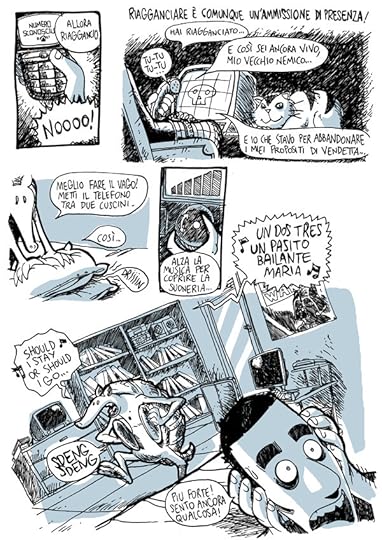 M’è capitato Zerocalcare così. Mandò in redazione delle cose per la rivista Canemucco. Ci folgorò tutti all’unisono. La consueta polifonia vocale di “forse”, “boh”, “per me può andare”, “a me non piace”, quella voltà s’intonò in coro di “QUESTO SI’! ASSOLUTAMENTE SI’!”, seguito dagli allelujah. La storia era questa che segue e mi ci riconobbi in almeno sette paranoie su dieci (quando lessi “quello del tatuaggio” mi crepai, perché avevo avuto anch’io un tizio che mi perseguitava con… vabè, eccola)