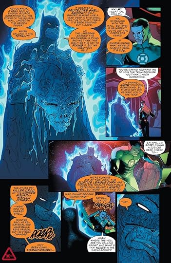 “THE TOTALITY” part two! The League faced an impossible decision…and now they must face the consequences! While Martian Manhunter and Batman attempt to recruit an old ally back into the fold, The Flash and Hawkgirl are blindsided by new challenges that could rewrite their mythologies!”