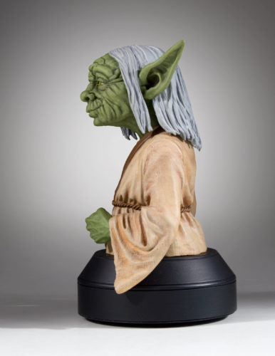 But take a good look at this early concept, now immortalized in a bust by Gentle Giant, and you see the start of several ideas that wound up going in other directions. Labyrinth‘s Hoggle and The Dark Crystal‘s Gelflings, for example, look to share some DNA with this green guy. And Mel Brooks definitely got some Yogurt inspiration.
