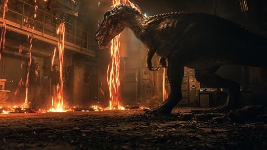 “The fifth Jurassic Park movie, a film that is aware that the nostalgia keg that gave plentifully to the last several entries in the franchise runs the risk of tapping out—so it preemptively scrapes the bottom of the barrel for narrative ideas that include exploding volcanoes and velociraptors rummaging around a haunted house like they’re Christopher Lee.”