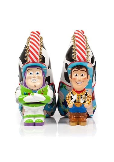 One of Irregular Choice’s hallmarks is chunky heels, and for Toy Story, they cleverly use stacked toys. In the above heel, Woody and Buzz replicas hold up your feet to make them soar to infinity and beyond.