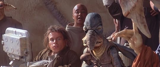 When Han goes to Dryden’s ship to hand over the coaxium, the crime boss offers a claw fish snack. The creature is the gigantic fish we saw attack Qui-Gon and Obi-Wan on Naboo in The Phantom Menace.
