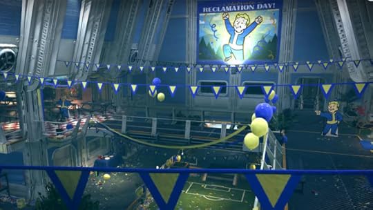 So far, we don’t see any bodies, and it looks like there was recently a Reclamation Day ceremony to celebrate the opening of Vault 76. Reclamation Day is about the still relatively normal humans who are supposedly going to take back the world from the radioactive creatures who now inhabit it. If the later games in the series are any indication, that didn’t go so well well the residents of Vault 76.