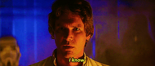 After their misadventures, Lando says to Han, “I hate you.” Han replies, “I know.” It’s a play on his infamous I love you/I know scene with Leia in Empire.