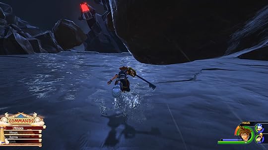 As noted, you can jump onto most objects you encounter. And if you just move forward, Sora sort of automatically adjusts, maneuvering over or around obstructions with ease, and even running up walls. The vertical aspect of movement is especially emphasized in Olympus, where I dashed up sheer rock faces and cliffs to get to the Rock Titan, dodging to the left and right to avoid boulders falling over the edge. To say it’s easier to move isn’t quite the right way to describe it. Movement’s more intuitive and fluid. It’s worth taking a few minutes to race around and see what you can do.