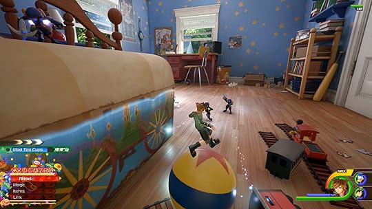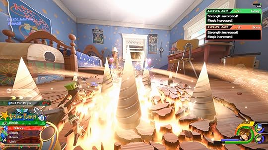 Textures, lighting, interactivity with the environment around you—all of these are better in KH3. I ran around Andy’s room and Galaxy Toys, leaping on as many surfaces as possible. You can roll around on balls, knock items off shelves, and jump on practically anything (more on that in a minute). Taking the time to explore is rewarding because of the way the environments react to you.