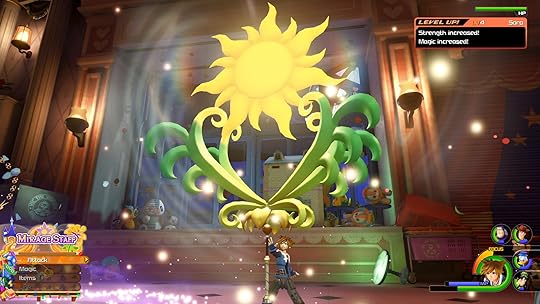 But now, you can switch between Keyblades during combat. I’m a button masher, so seamlessly transitioning between Keyblades is something I need to work on, but noting the contrasts between what the Toy Story, Tangled, and Monsters, Inc. Keyblades can do incentivized me to become better. Varying attacks and animations makes combat more engaging, less repetitive. I found myself excited about fighting every pack of Heartless instead of feeling, “Ugh, again?” because I wanted to try other techniques.