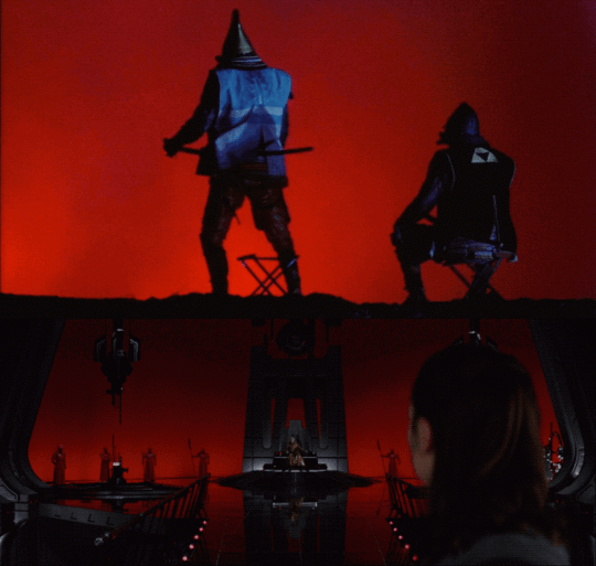 Akira Kurosawa‘s 1980 samurai epic (which was partially funded thanks to George Lucas and Francis Ford Coppola) has a vibrant color palette throughout the film, particularly the blood red used in battle scenes. (The vibrant color of the armies also makes an appearance in his final film, Ran.) The art department looked to Kurosawa’s samurai films as a source of inspiration for Snoke’s throne room. “We used this concept of the red as a kind of regal quality, as a bit of a surprise and mystery. That’s what happens when you withhold a color like that in a movie. All of a sudden, a new environment is both a surprise and frankly kind of a delight. The red puts across this sense of Snoke as a regal being and also that this is a throne room. This is not where the little people go about doing their business, this is essentially where he projects his power to the universe,” Heinrichs recalled.