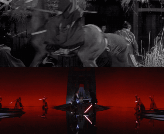In lieu of picking a Kurosawa film, Johnson chose Hideo Gosha’s 1964 samurai flick as part of his screening series. The uneasy camaraderie between the three samurai mirrors the unlikely team up between Rey and Kylo Ren in the throne room duel sequence.
