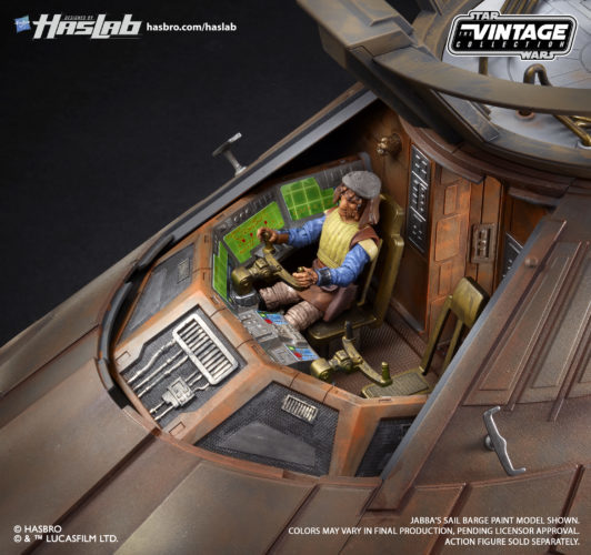 At Toy Fair 2018, Hasbro announced their most ambitious Star Wars vehicle in the 3-3/4 inch action figure scale to date: Jabba the Hutt’s Khetanna, commonly known as his Sail Barge. The proposed toy will be over four feet long and cost $500, but—and here’s the big qualification that has not yet been met—it must be preordered by a total of 5,000 people in the next 13 days in order to be made. As of this writing, they’re at 3,029 orders.
