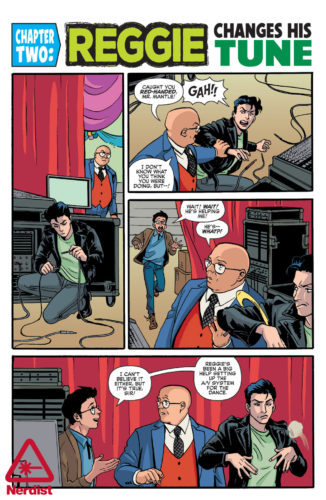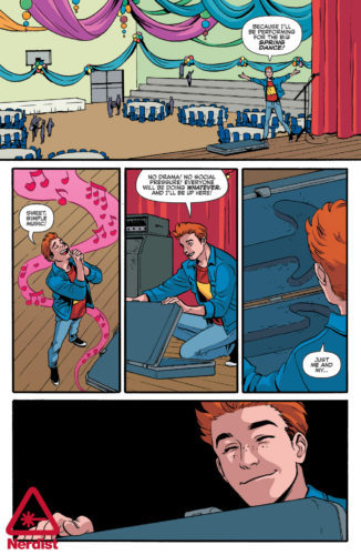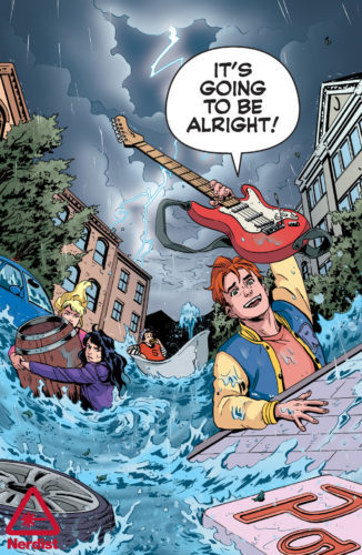 Flynn told us of the upcoming story: “These types of ‘calm before the storm’ stories are fun because you can see things coming together, but the characters never do. One of my favorite moments is when the mystery revolving around Archie’s guitar is almost solved and Moose gets involved. And the ending sequence is perhaps the most intense build-up Archie fans have ever seen!”