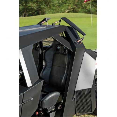 The wings of the TumblerCart fold around the passengers, giving them full protection from either golf balls or thrown clubs from one of those rage quit golfers. It doesn’t look like the TumblerCart will convert into a mini Bat-Pod, but if any of you fabricators are able to create it, please let us know!