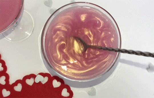 Love is in the air. For this Valentine’s Day, you can cast a spell your family, friends, and other loved ones without having to get accepted into Hogwarts. No potions class necessary. Though many fans probably wouldn’t mind Professor Snape looking over their shoulders while they mix and stir, adults of legal drinking age can brew this take on the Harry Potter elixir unsupervised. All it takes to replicate the sparkly liquid sold at Weasley’s Wizard Wheezes is a little special juice and a bit of shimmer.