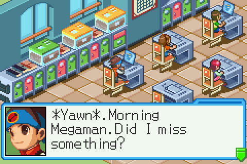 Gameplay aside, what kept me coming back were the characters and world. The 20xx of Battle Network was a modern-day haven of the early internet, and Mega Man was an online AI avatar called a NetNavi. He and his friends, including fan favorites Gutsman and Protoman, were linked to a group of IRL middle-schoolers, lending the game a schooldays, Spider-Man charm as you juggled the responsibilities of everyday life while trying to save the world. Altering servers in the real world changed Mega Man’s battlefield, and likewise actions in the Net would affect real world change, making every mission a two-front battle.