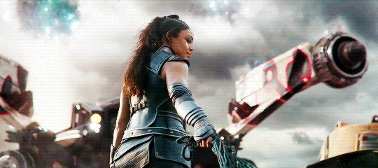 Thompson gets a chance to play a character audiences are very familiar with, though one rarely played by women: That of a loyal soldier who realizes her country lied to her and betrayed her, costing her everything. And I’m not just talking about her comrades, the other Valkyries who died in glorious battle only to be shunted into the annals of history by Odin. I’m talking specifically about her lover. But wait, I hear you say. There was no romantic subplot for Valkyrie! Oh, but there was. Hela killed her girlfriend. Thompson has been very open about Valkyrie’s bisexuality. And while Marvel shied away from overtones–frankly a disappointment in the year of our Lord Cthulhu 2017–that didn’t stop Thompson from playing the character that way. Don’t believe me? From Rolling Stone: