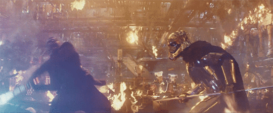 Look, it’s Snoke in the flesh and not as a hologram! He looks mean and also angry. I can’t tell if his discussion with Rey isn’t going well or if he’s testing her limits. He seems like a tough love sort of teacher. Seeing Snoke meet with Rey is shocking, but it’s not the only aspect that made me take note. This scene indicates Snoke’s a Force user and a powerful one at that.
