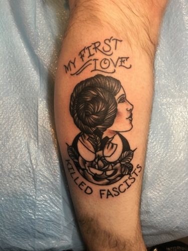 There aren’t enough adjectives in the world or the galaxy far, far away to describe Leia Organa. She stands for what’s right and has put duty over her personal needs again and again. And this Star Wars tattoo captures a tiny bit of how she’s bravely stood against the evil–first the Empire and now the First Order.