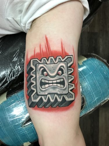 And for something completely different in the realm of geeky tattoos, take a bite out of this Thwomp. I can’t get over the colors in this Super Mario ink. It looks way more fierce in this tattoo than in the game.