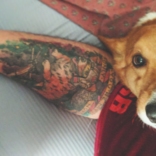 Scott’s corgi-centric permanent art was inked by tattooist Julie Bolene of Thunderbird Tattoo. It’s more than a creative work of art, it’s therapeutic. “Whenever I look at this tattoo, I’ll be reminded of what helps keep me going. Carlton’s been one of the few reasons I enjoy getting out of bed in the morning. In a weird way, Carlton is ‘my only hope,'” Scott said.